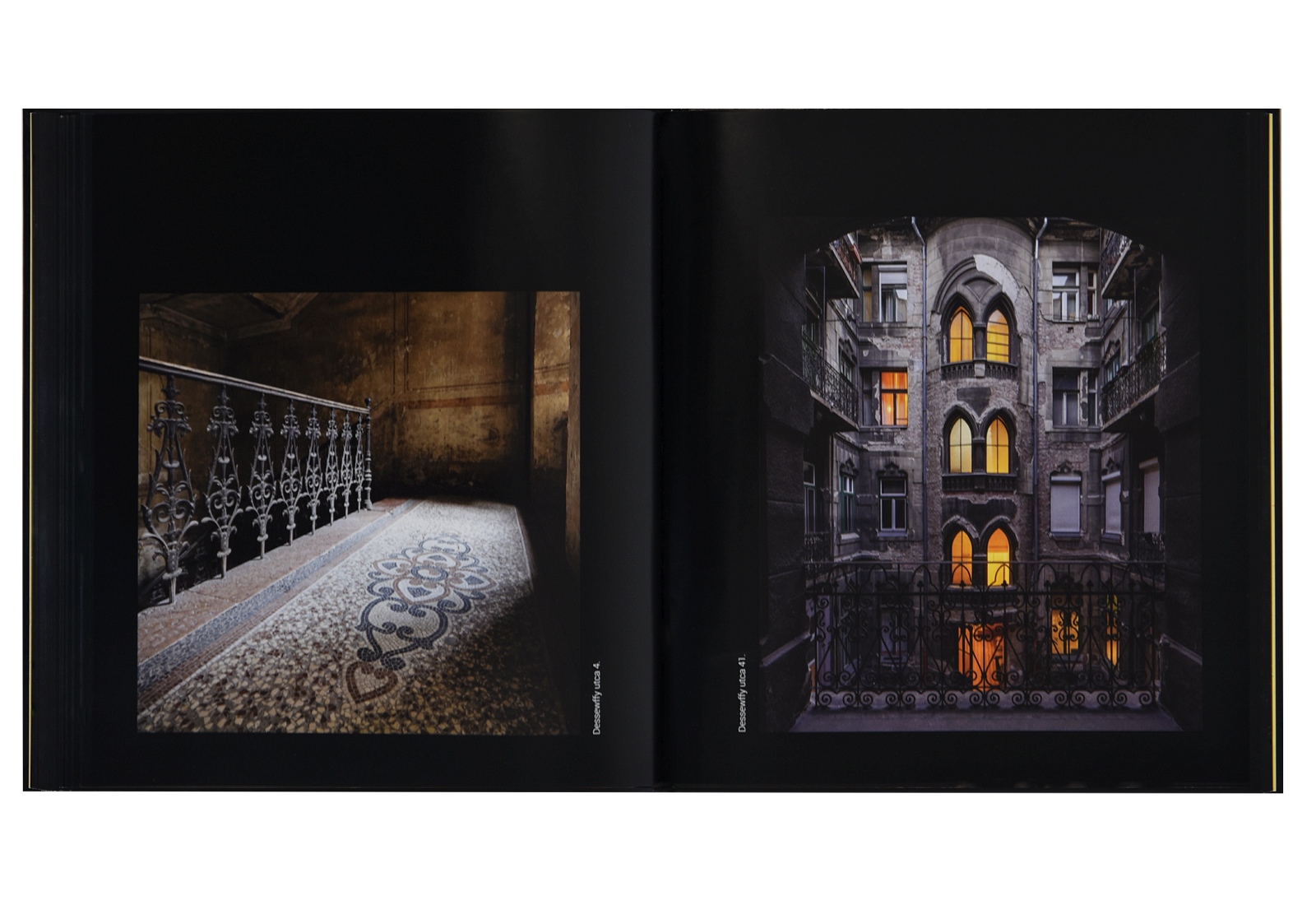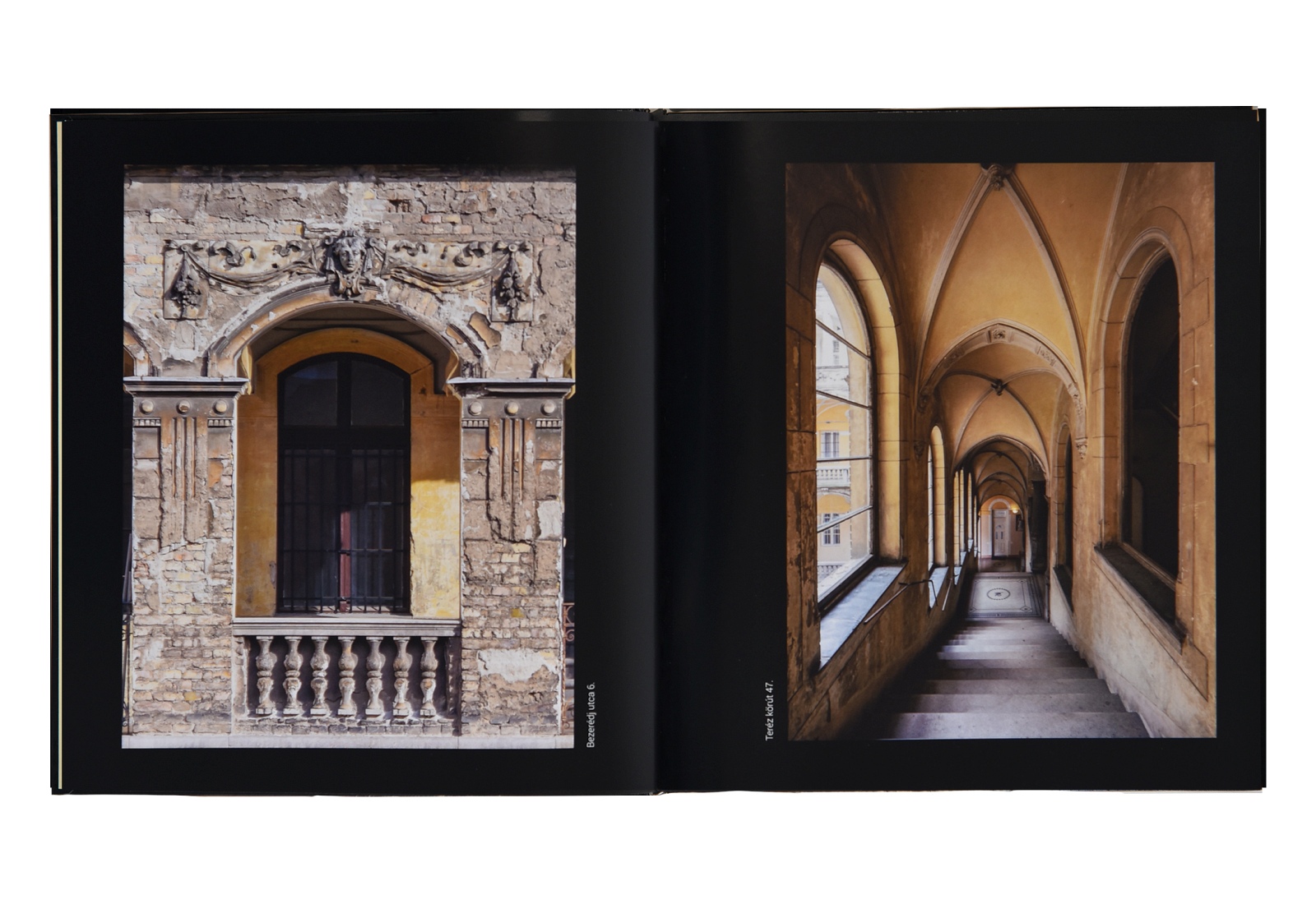 Ez a fotóalbum Budapest egyik rejtett arcát mutatja be; a századfordulón épült bérházak kapuk mögötti varázslatos világát; az egykor elegáns épületek ma is élő, misztikus, a múlt nyomait őrző tereit, részleteit.
